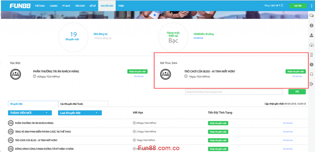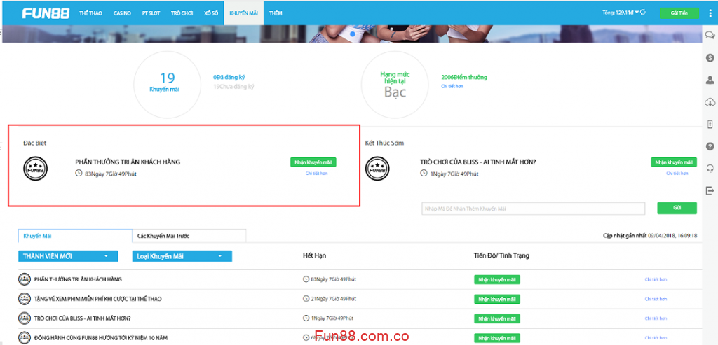 Fun88 khuyến mãi thông tin tài khoản VIP