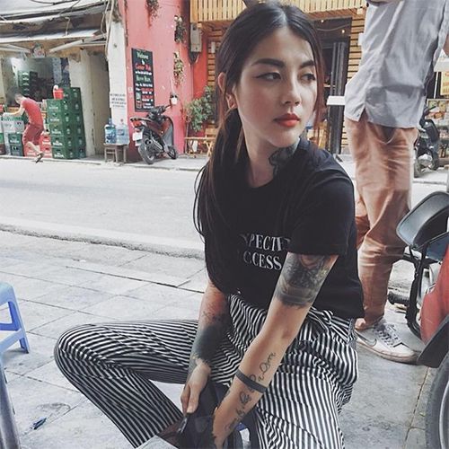 Là nữ thợ xăm nổi tiếng nhất Hà Thành với những hình xăm độc và lạ trên cơ thể.