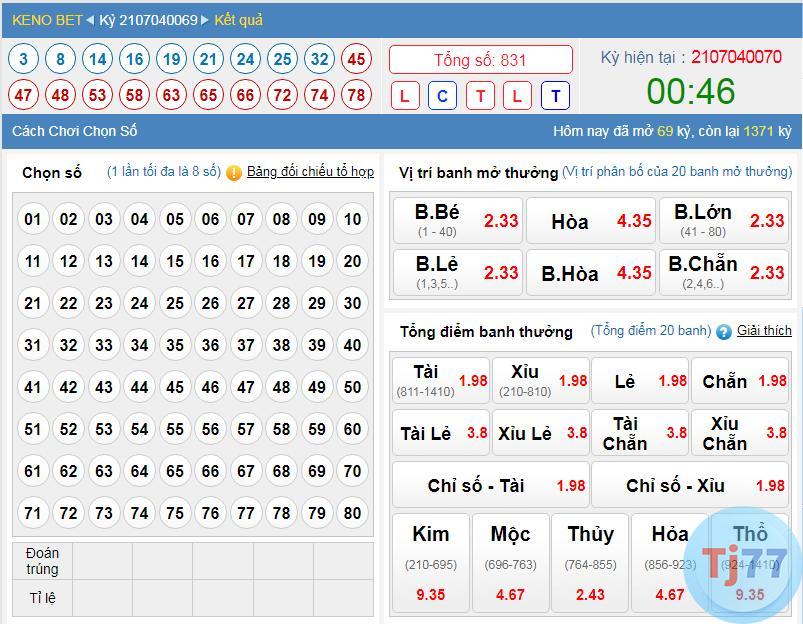 Chơi KENO BET tại trang chủ nhà mẫu Thabet là trò chơi Tj77.net mới xuất hiện. Sao ấy tìm mức cược mình muốn cược bằng những nút bấm trên giao diện, Sau lúc đã cược xong thì chờ người cái mở KQ nhé.